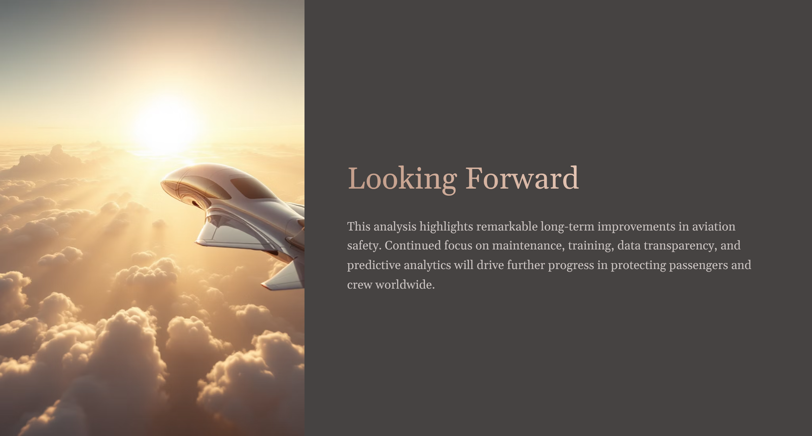 Historical trends show significant improvements in aviation safety standards and technologyAverage fatality rates have decreased substantially in recent decades, reflecting enhanced safety protocols